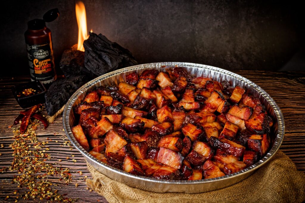 Onze beroemde California Hot Spek is het sappigste, meest smaakvolle stukje spek dat je in Nederland vindt. Langzaam gebarbecued tot perfectie, vol karakter en Amerikaanse BBQ vibe. Serveer met een beetje California Hot Sauce voor een pittige kick en een echte Amerikaanse BBQ-beleving.