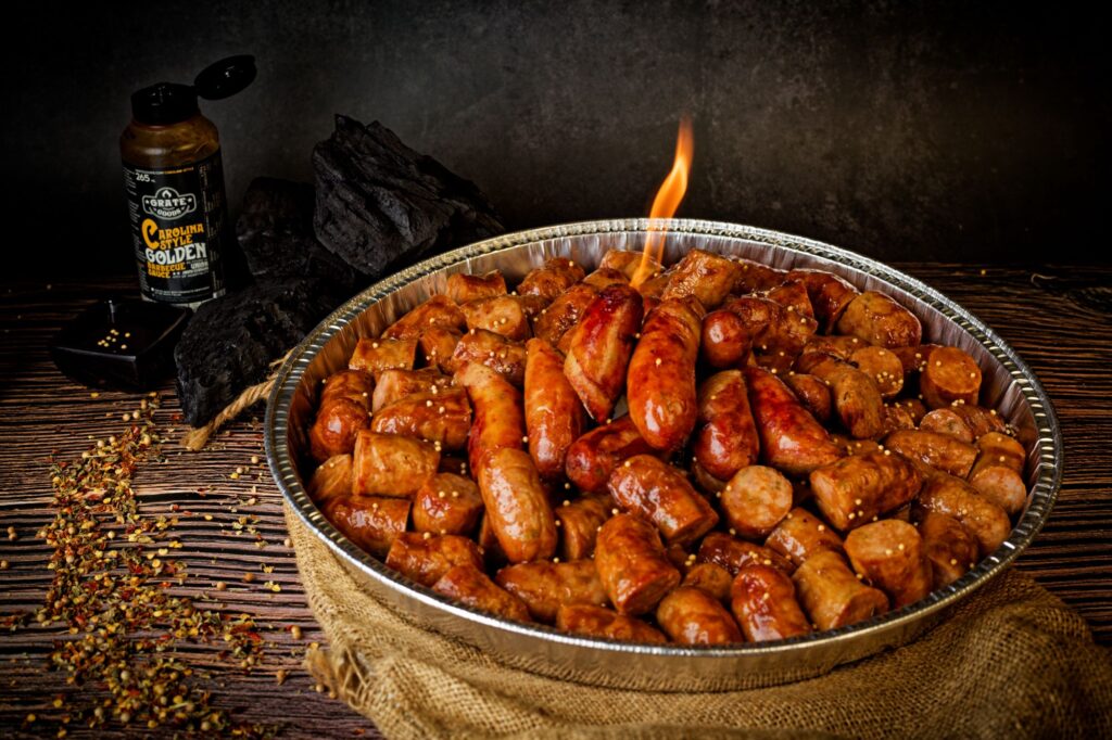 Fingerfood pan vol authentiek gebarbecuede jalapeño cheddar worstjes, sappig en vol smaak met precies de juiste kick. Klassieke Amerikaanse BBQ, perfect om rechtstreeks van de pan te genieten. Extra lekker met onze Carolina Golden sauce.